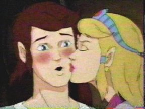 Captain N was another DiC cartoon that contained many of Nintendo's other characters from other games such as Megaman amd Simon Belmont. It mainly starred a young videogamer called Kevin Keene who was transported into videoland to help Princess Lana against the evil Mother Brain. An older Link and Zelda guest-starred in several of the episodes and clearly still have a thing for each other! Link is luckily enough to get kisses this time! Sorry for the poor quality screen caps but I don't have the Captain N DVD to make good quality images.